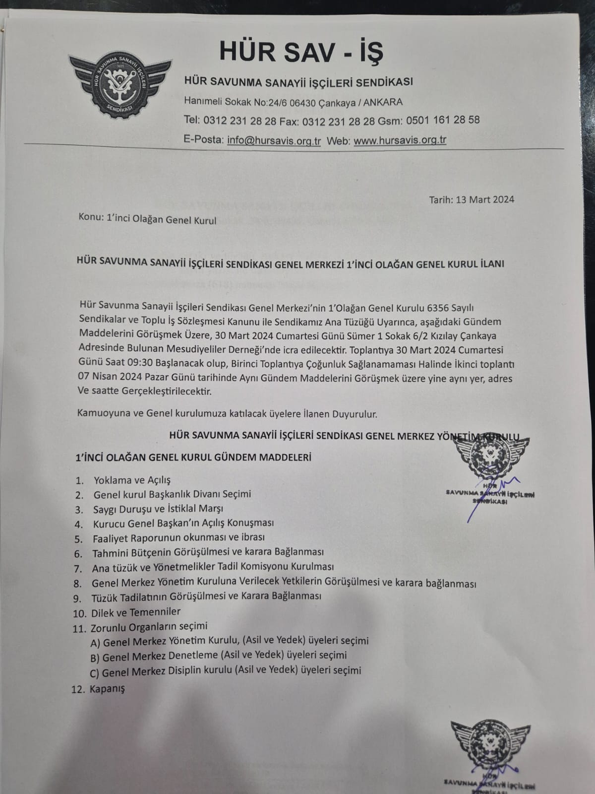 Genel Mart 13, 2024 Hür Sav-İş 1’inci Olağan Genel Kurul İlanına aşağıdaki metinden ulaşabilirsiniz; Previous Post Sendika Websitemiz Yayında